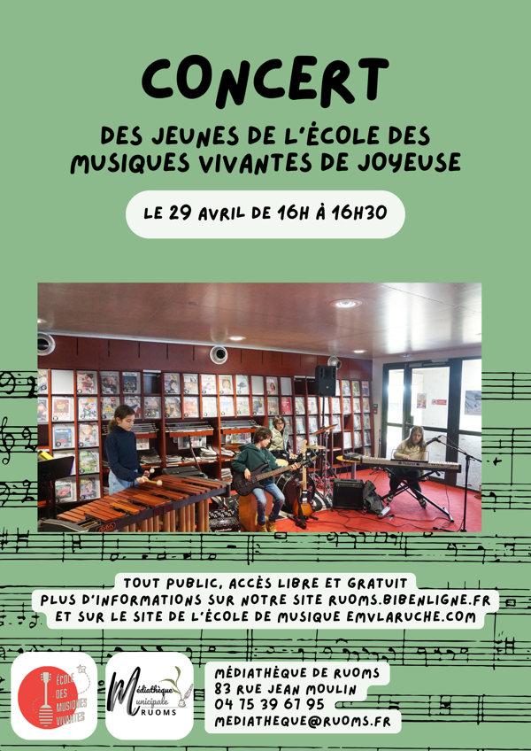 Concert des ateliers le mercredi 1er avril à 18h45 à la salle de la Grand Font à Joyeuse. C'est gratuite et ouvert à tout le monde